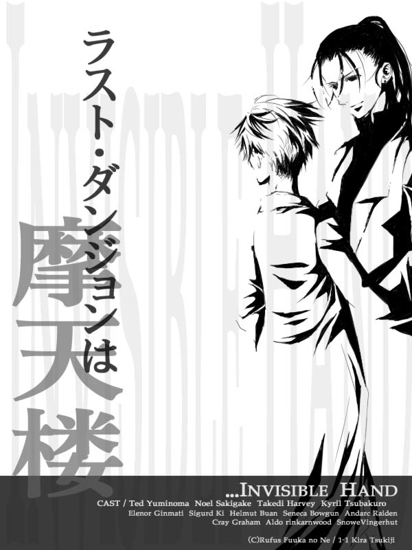 キラさ~ん、ノエル・テツ・ハー・エロ黒で一枚絵がほしいよ。リクエスト。のんびりでいいからたのみますこのとおり! そしたら映画風にキャッチフレーズいれて飾るの、うふふ~。え、キャッチ文? 決まってるじゃない。「ラスト・ダンジョンは、摩天楼」(センスねー!<でも気に入ってるらしい)